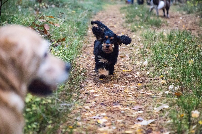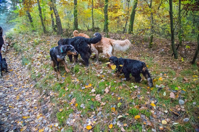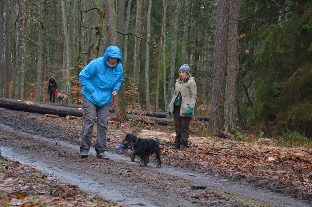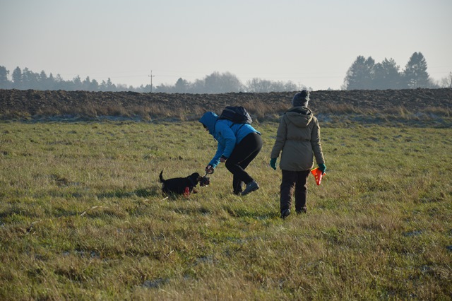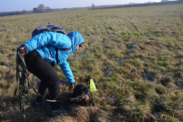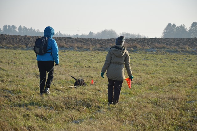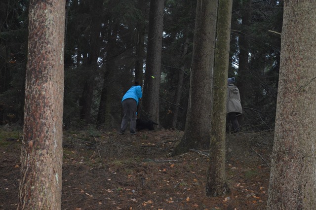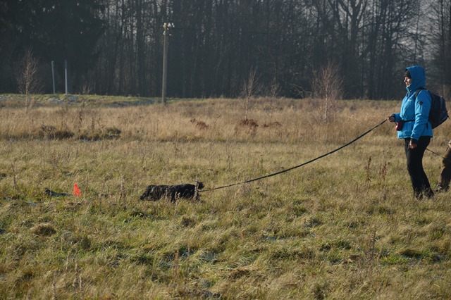 W sobotę od 8.00 rano pracowaliśmy już w terenie. Najpierw kładliśmy ściężkę w lesie z krwi na popołudniowe ćwiczenia. Potem psiaki tropiły swoje zabawki i nasze zgupione rzeczy.