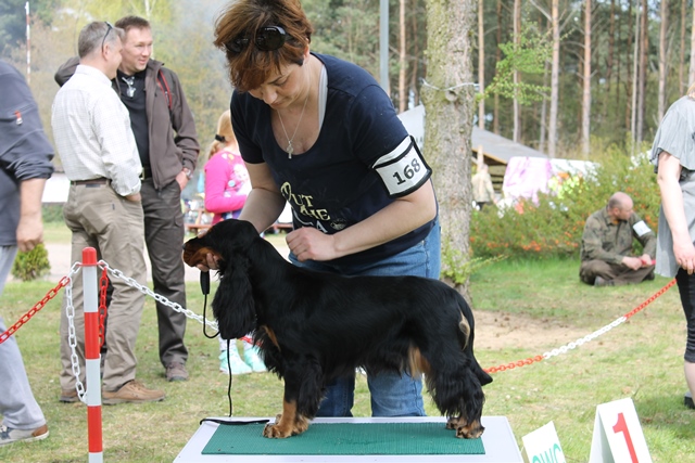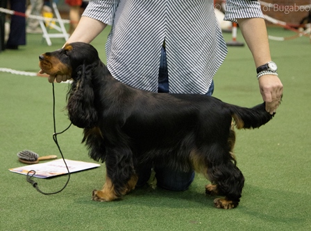 Opis: "Czarna podpalana, doskonale zbudowana, bardzo ładna głowa, bardzo dobra górna linia, doskonałe kątowanie, dobra w ruchu".