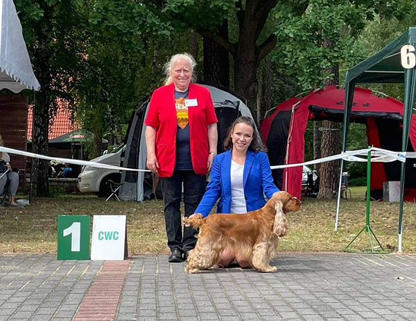 W dzień kiedy rodziły się nam szczenięta kilkaset kilometrów dalej, w Łodzi, nasz wychowanek SENCE OF HUMOR Give a Five zdobył ostatni wniosek CWC potrzebny mu do uzyskania tytułu Championa Polski. Moje ogromne gratulacje dla Właścicieli Tofika oraz dla Pani Natali Sicińskiej przygotowującej i prezentującej Tofika w ringu za ukończenie championatu mimo panujących obostrzeń i zawieszonych przez dłuższy czas wystaw. Dziękuję. Jestem dumna!